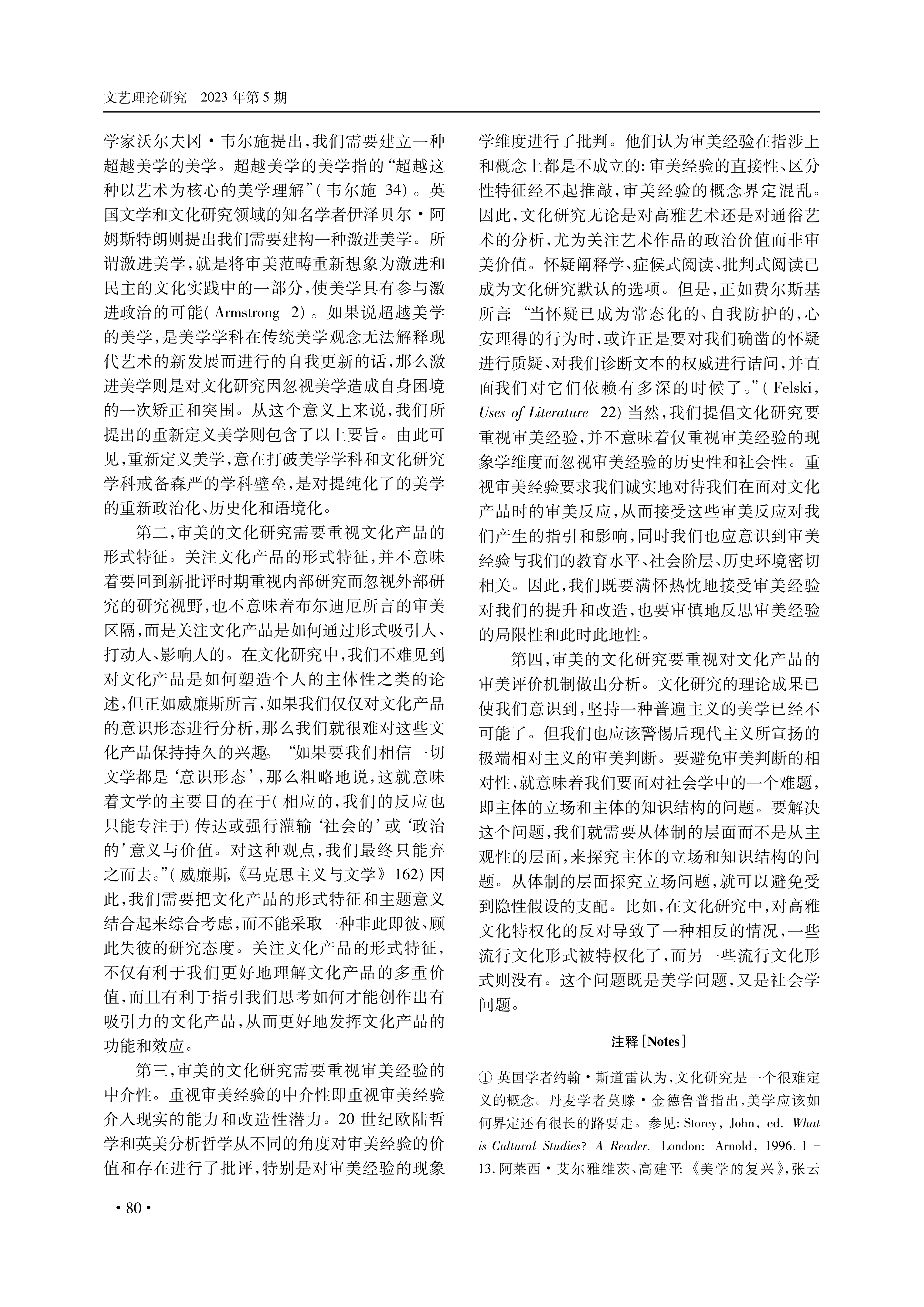 文化研究与美学:理论分野及对话交融