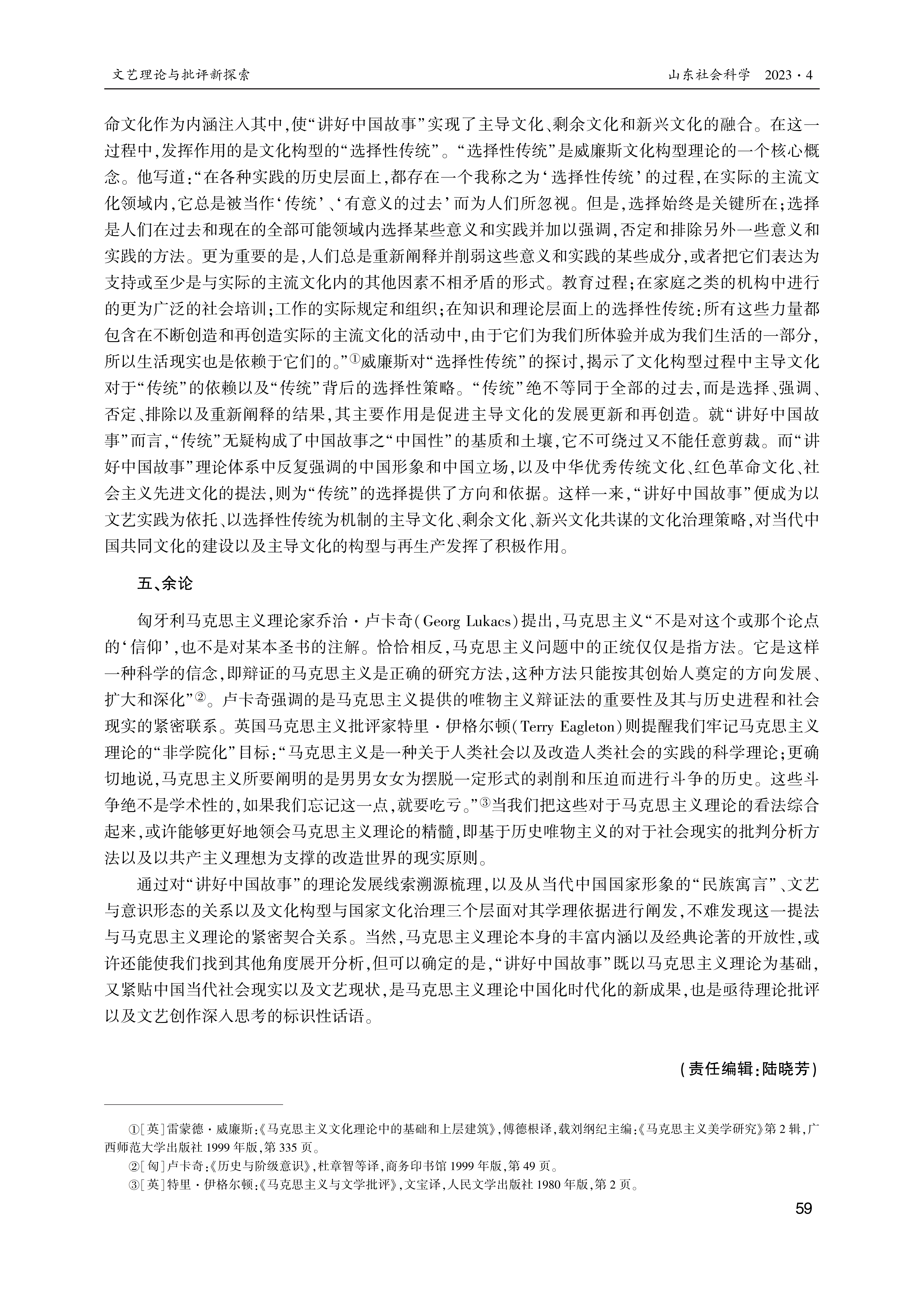 关键词:“讲好中国故事”;马克思主义理论;文艺与意识形态;民族寓言;文化构型