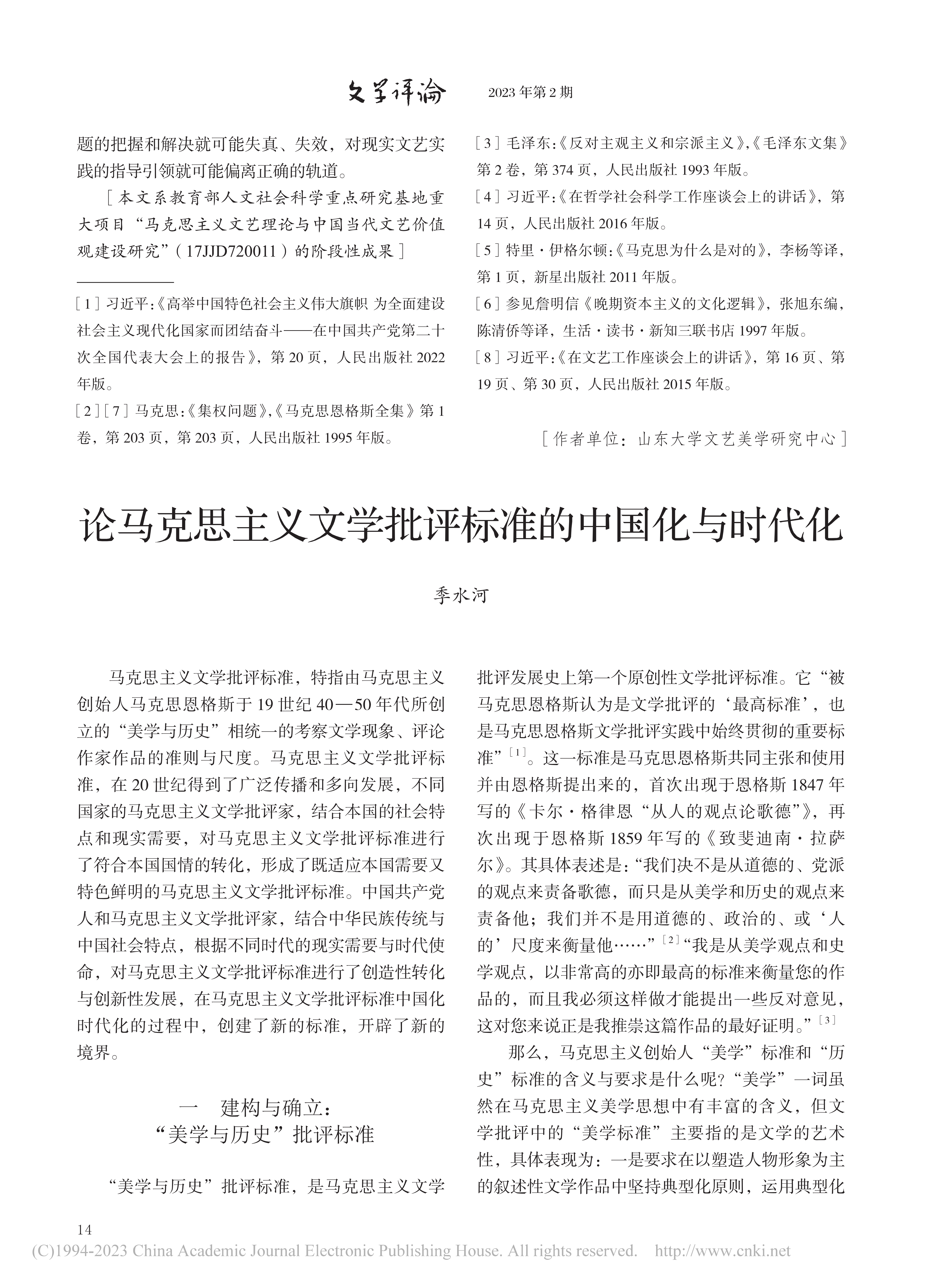 摘要:<正>党的二十大报告提出,在全面建成社会主义现代化强国、全面推进中华民族伟大复兴的新征程中,要继续开辟马克思主义中国化时代化新境界。不断谱写马克思主义中国化时代化新篇章,是当代中国共产党人的庄严历史责任,也是马克思主义文艺理论研究界应该勇力承担的伟大时代使命。