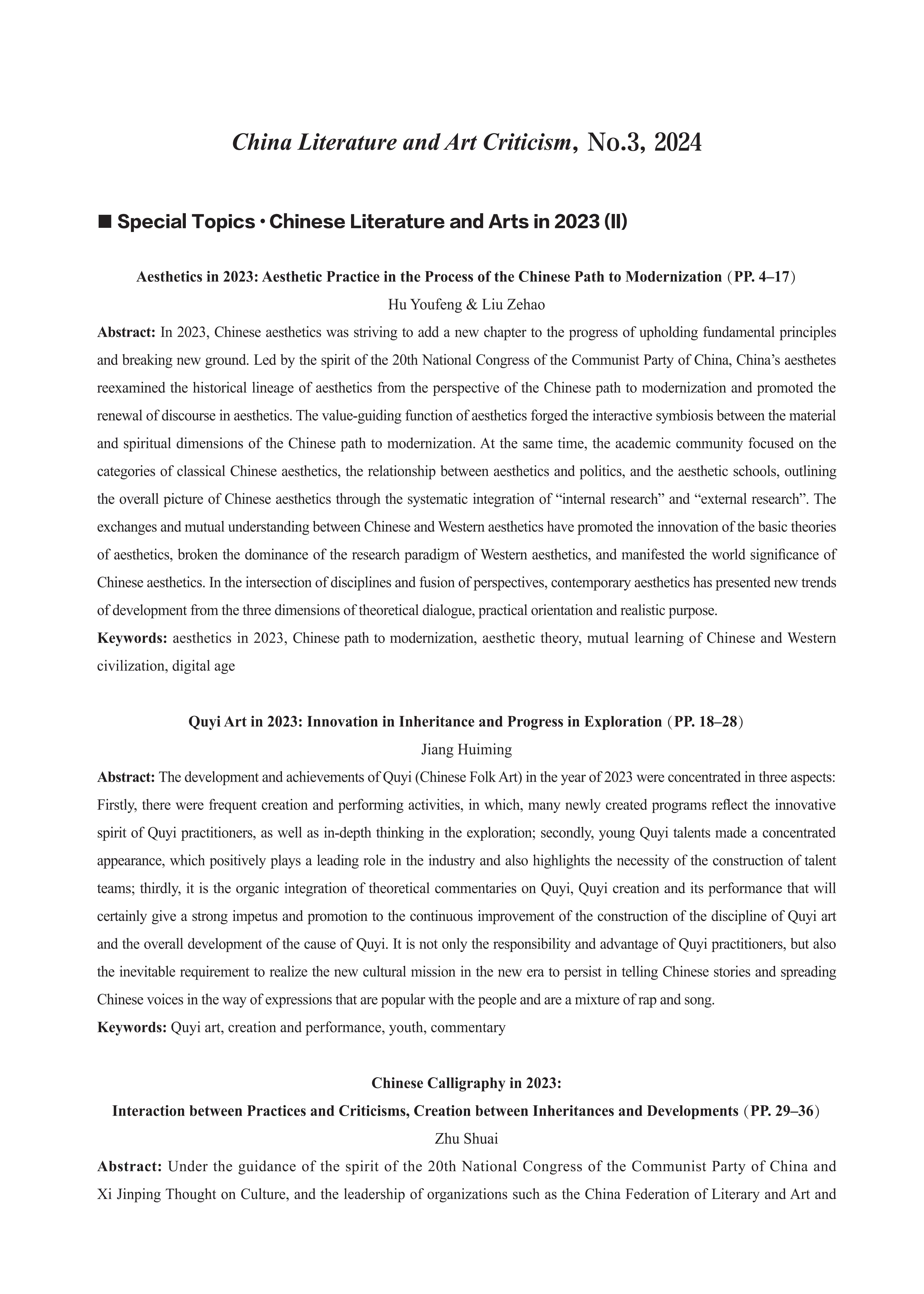 【关 键 词】 2023美学;中国式现代化;美学理论;中西文明互鉴;数字时代