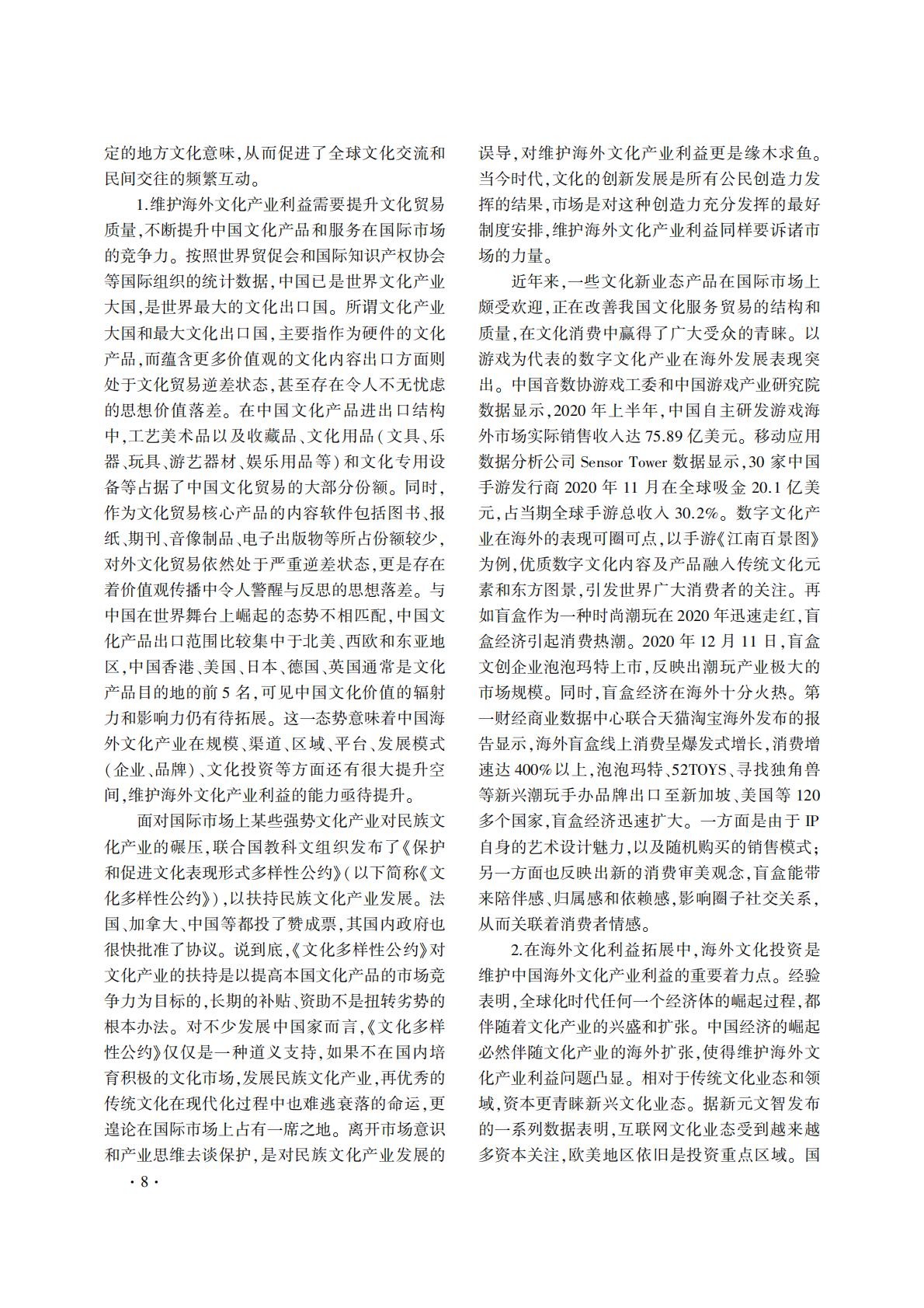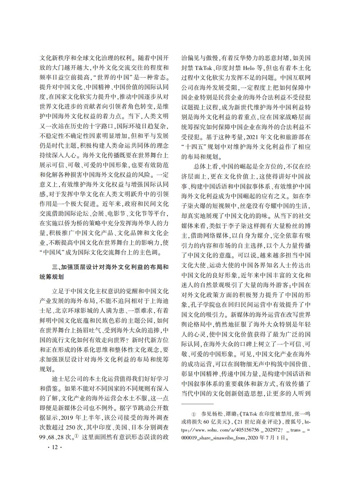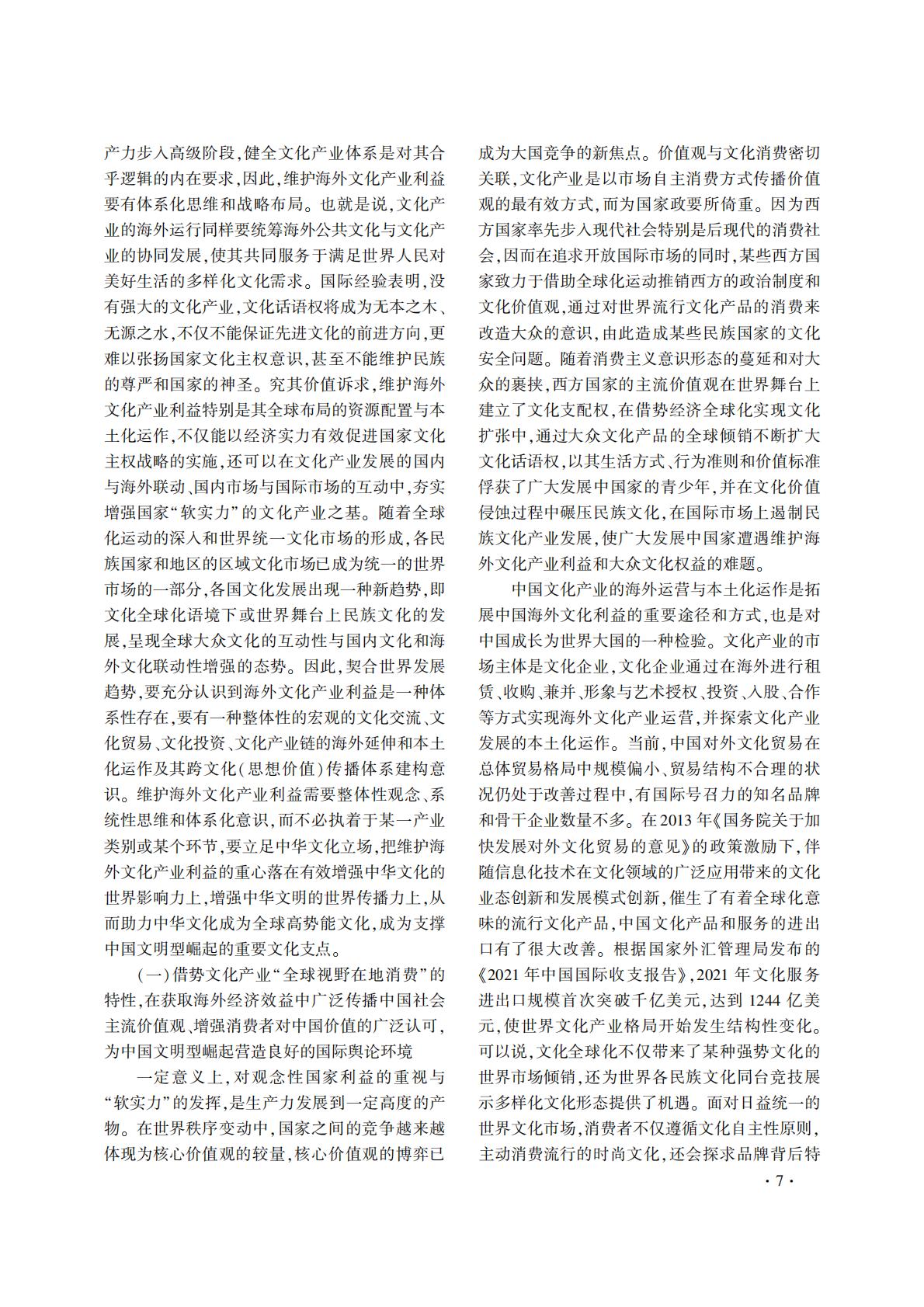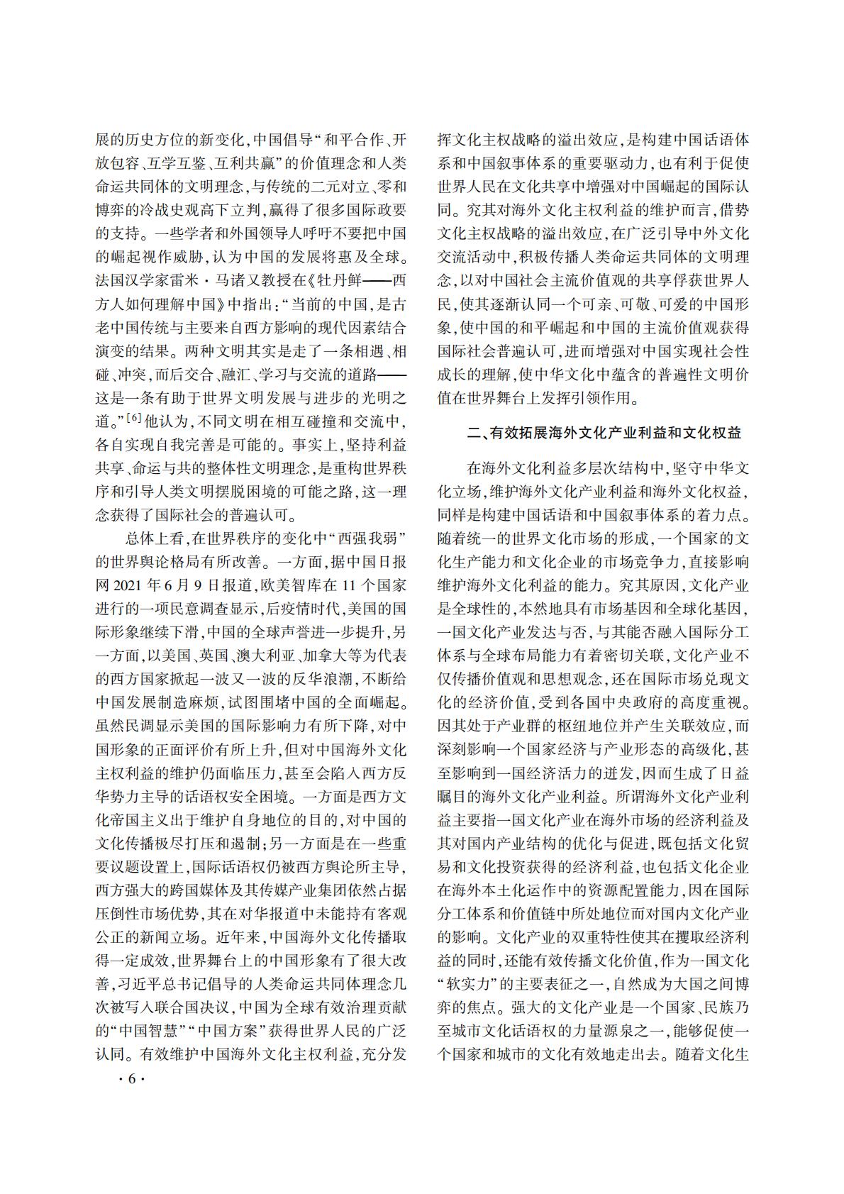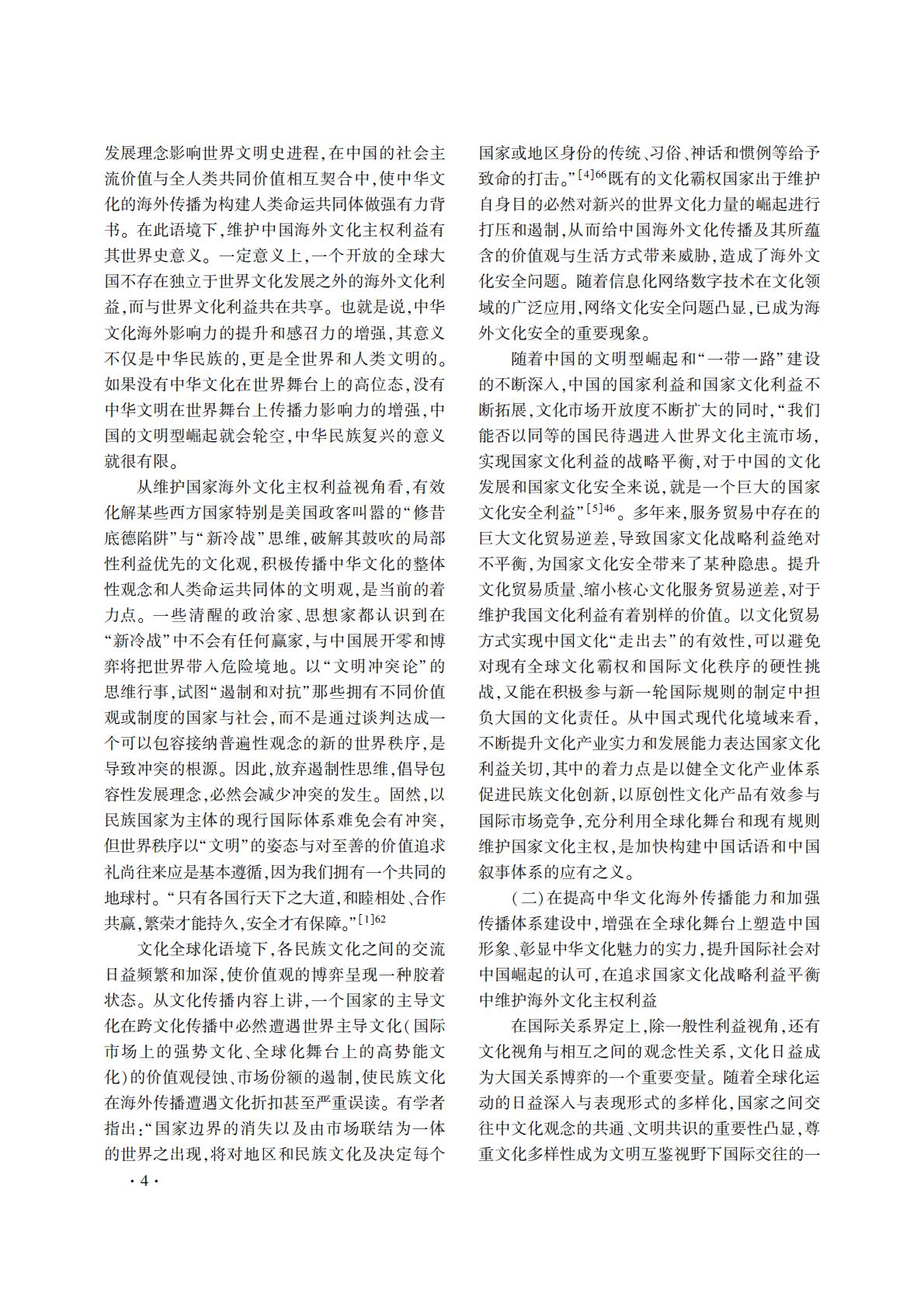 关键词:中华文化;海外文化主权利益;海外文化产业利益;海外文化权益;中国话语和中国叙事体系