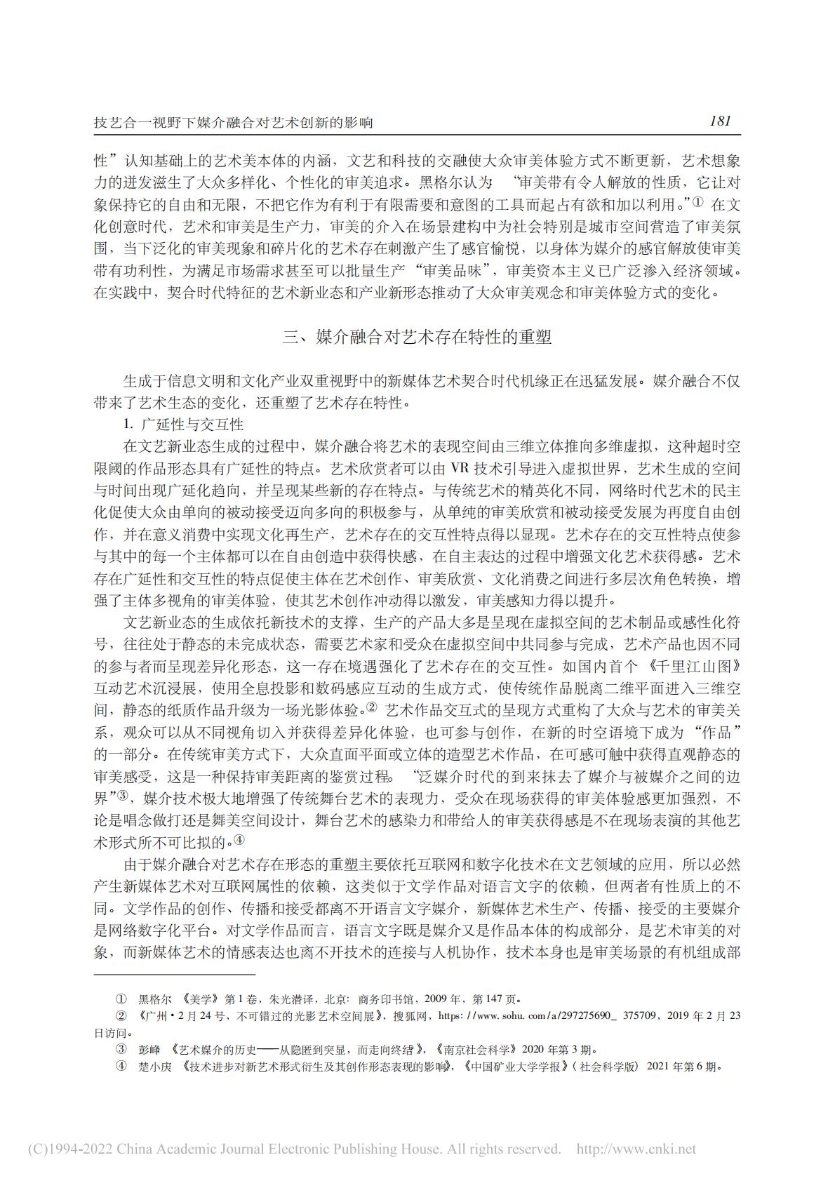 关键词:技艺合一;媒介融合;艺术观;文艺学美学范式;艺术创新;新媒体艺术
