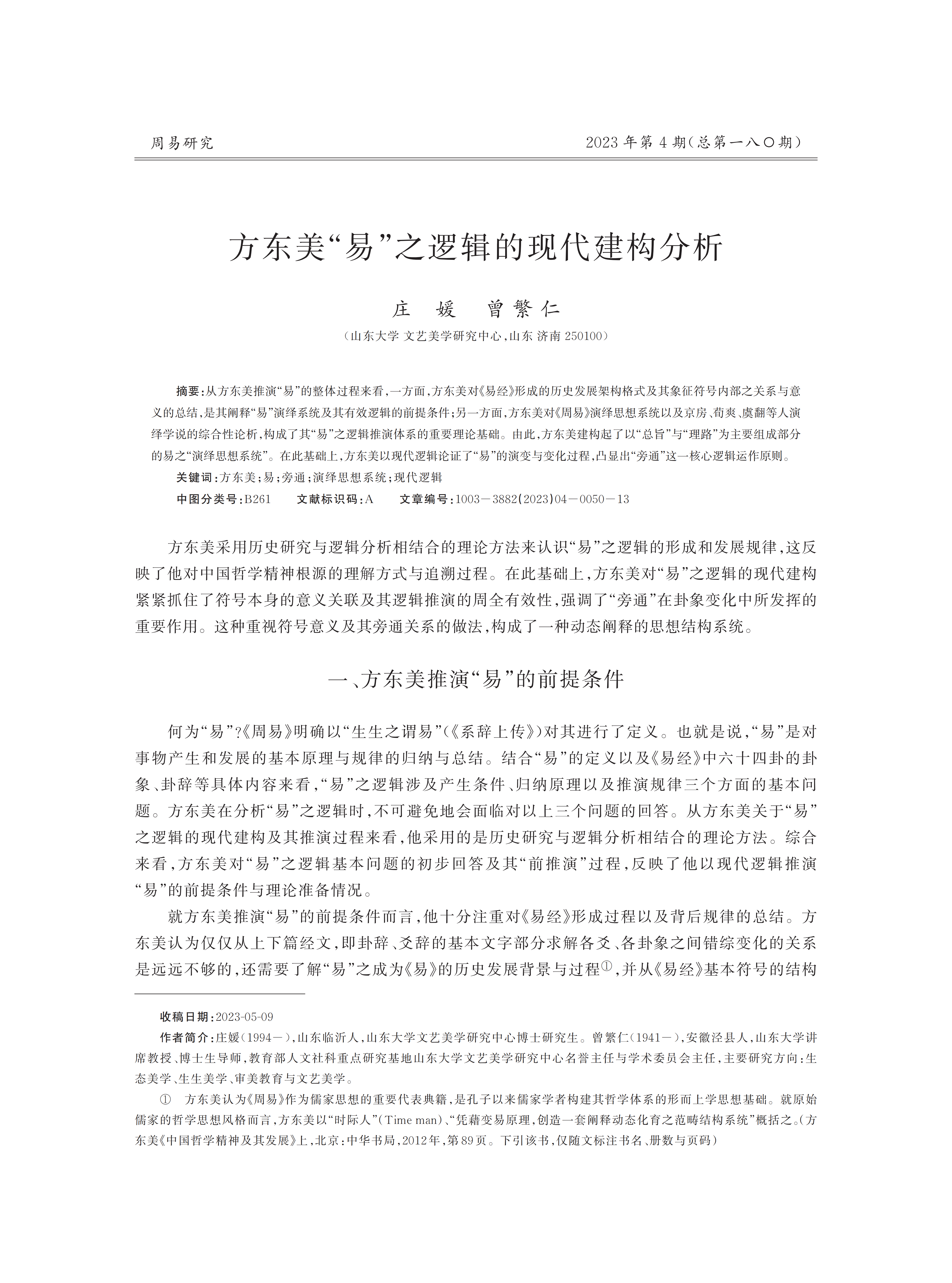 方东美“易”之逻辑的现代建构分析_庄媛.pdf