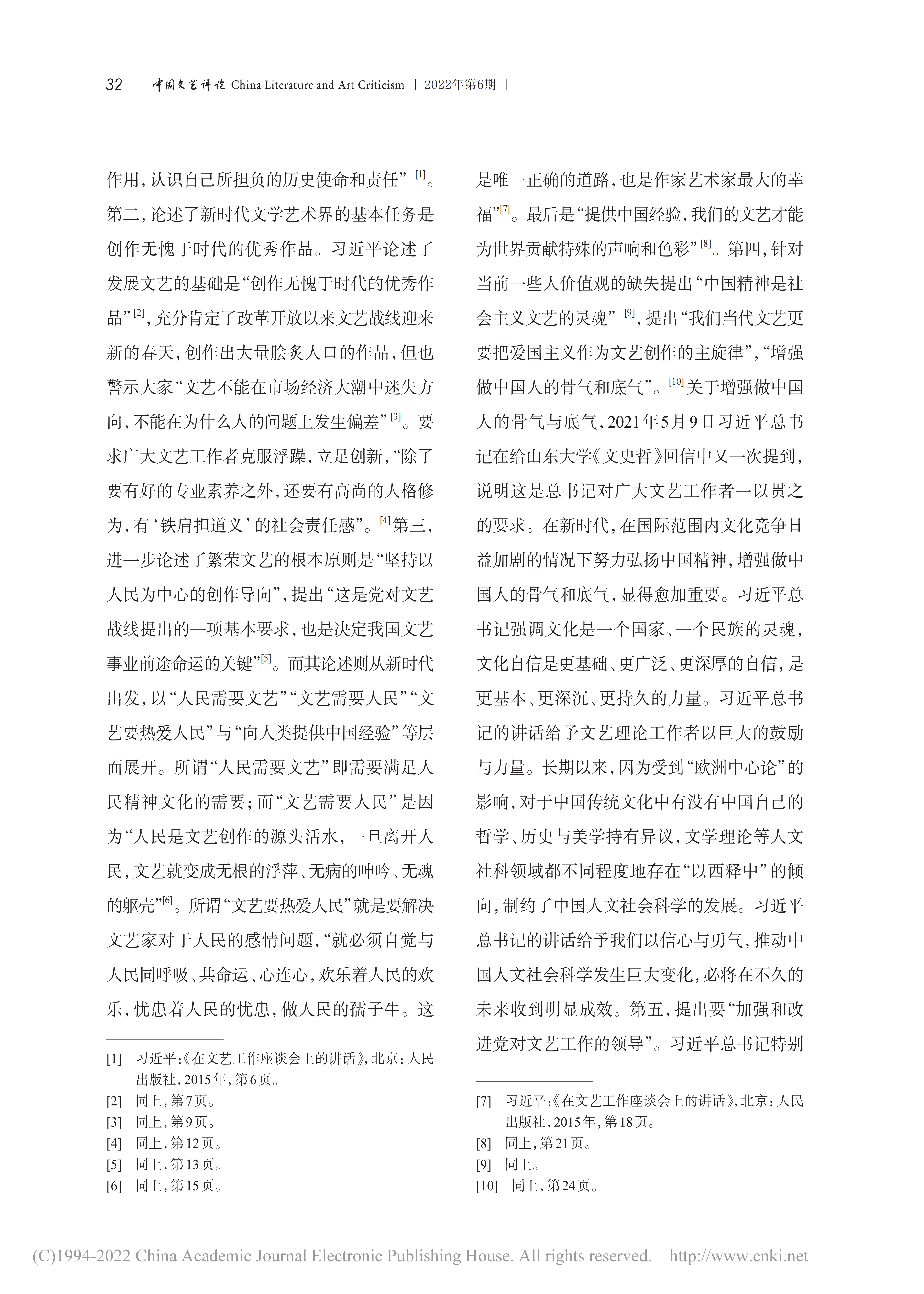 内容摘要:1942年5月,党中央与毛泽东同志根据当时延安文艺界的现实情况与革命事业的需要,召开具有重大历史意义的“延安文艺座谈会”,毛泽东发表了意义重大、影响深远的《在延安文艺座谈会上的讲话》,提出了文艺为人民与加强党对于文艺工作领导等根本论题,形成指导我国文艺事业发展的毛泽东文艺思想。2012年以来,习近平总书记根据新时代的新现实,对于我国文艺事业发表一系列重要讲话。在上述中国化马克思主义文艺思想指引下,教育培养了好几代文艺理论工作者,他们对于中国马克思主义文论的发展均作出不同的贡献。