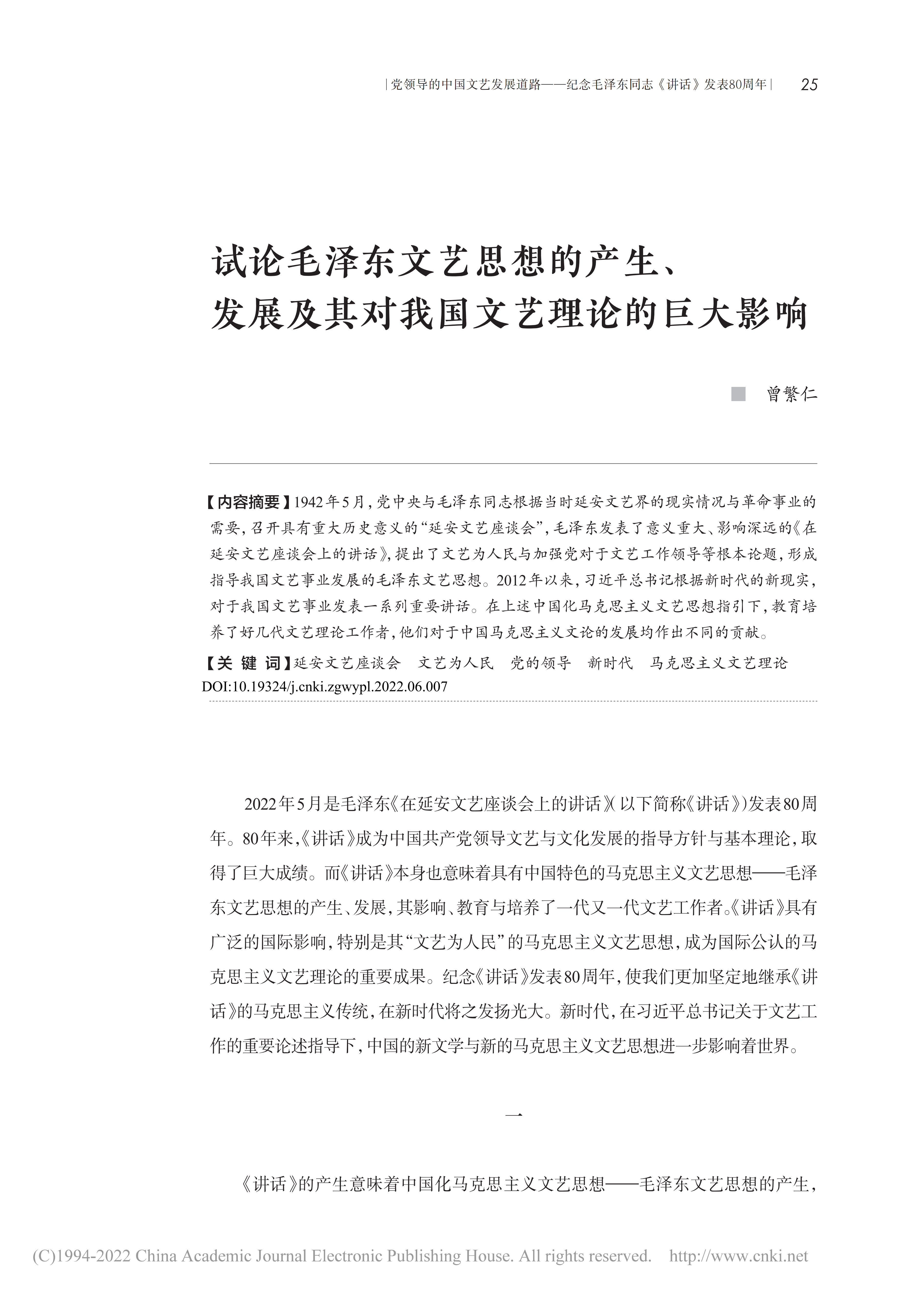 试论毛泽东文艺思想的产生、发展及其对我国文艺理论的巨大影响_曾繁仁.pdf