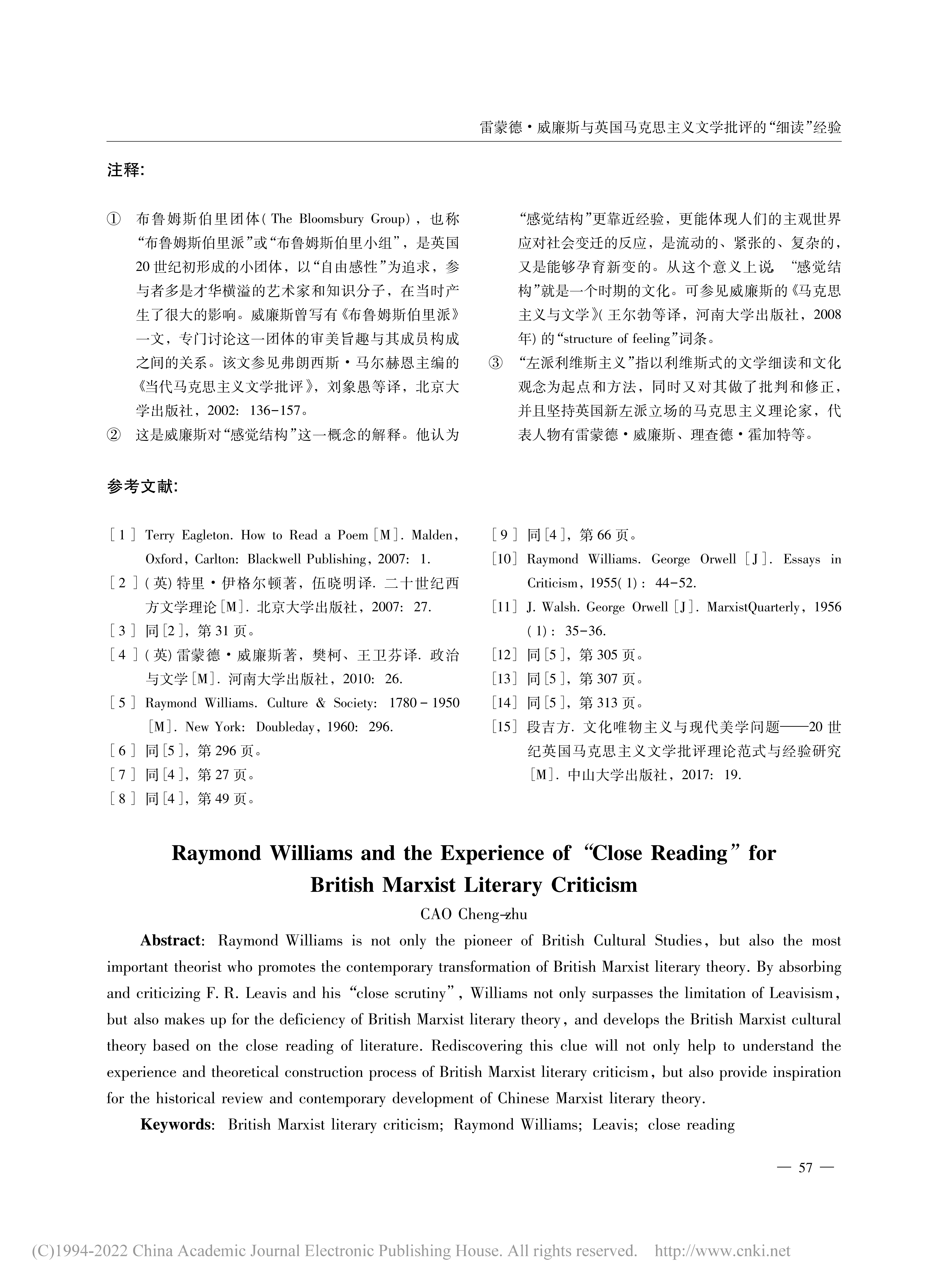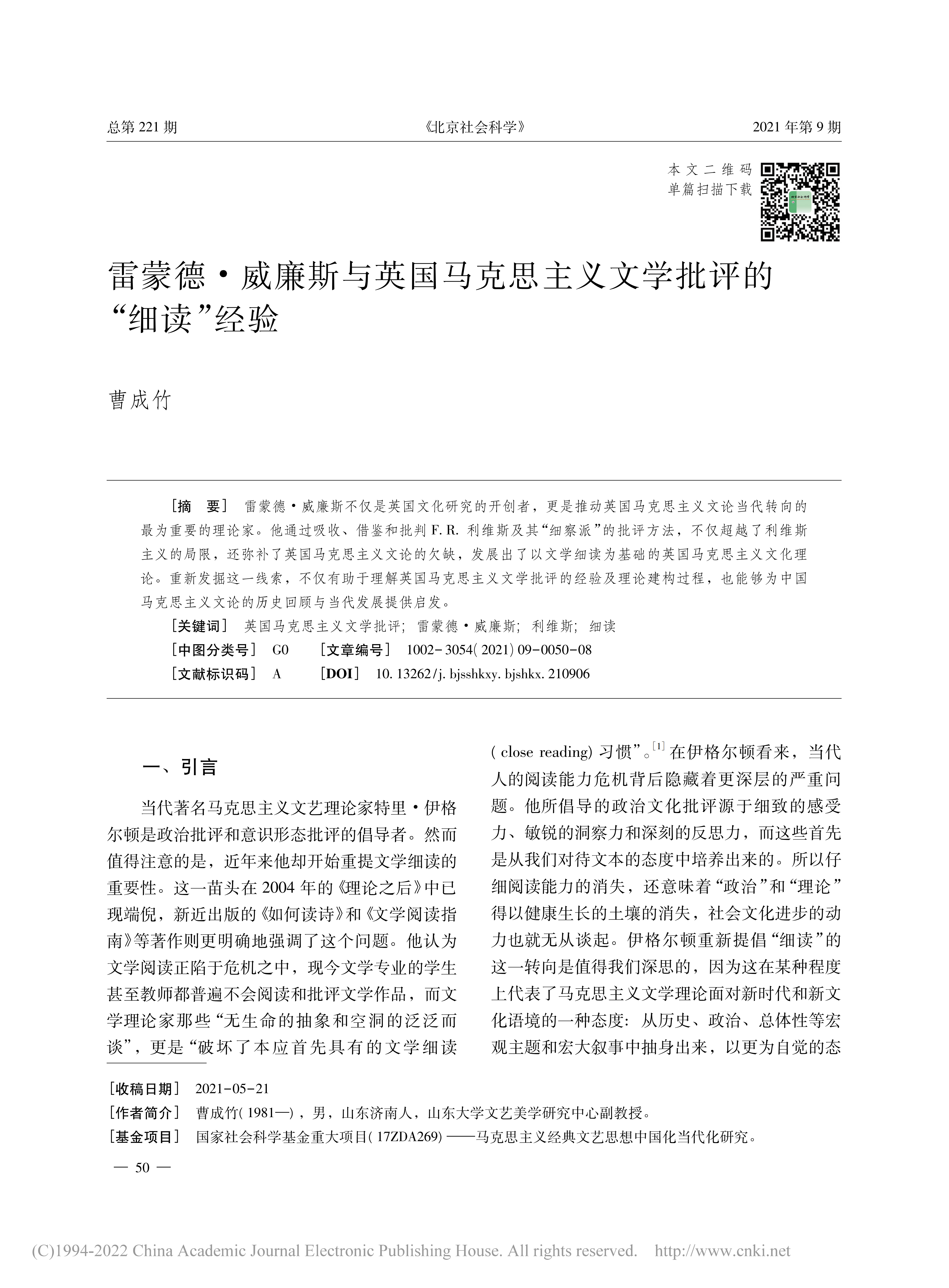 雷蒙德·威廉斯与英国马克思主义文学批评的“细读”经验_曹成竹.pdf
