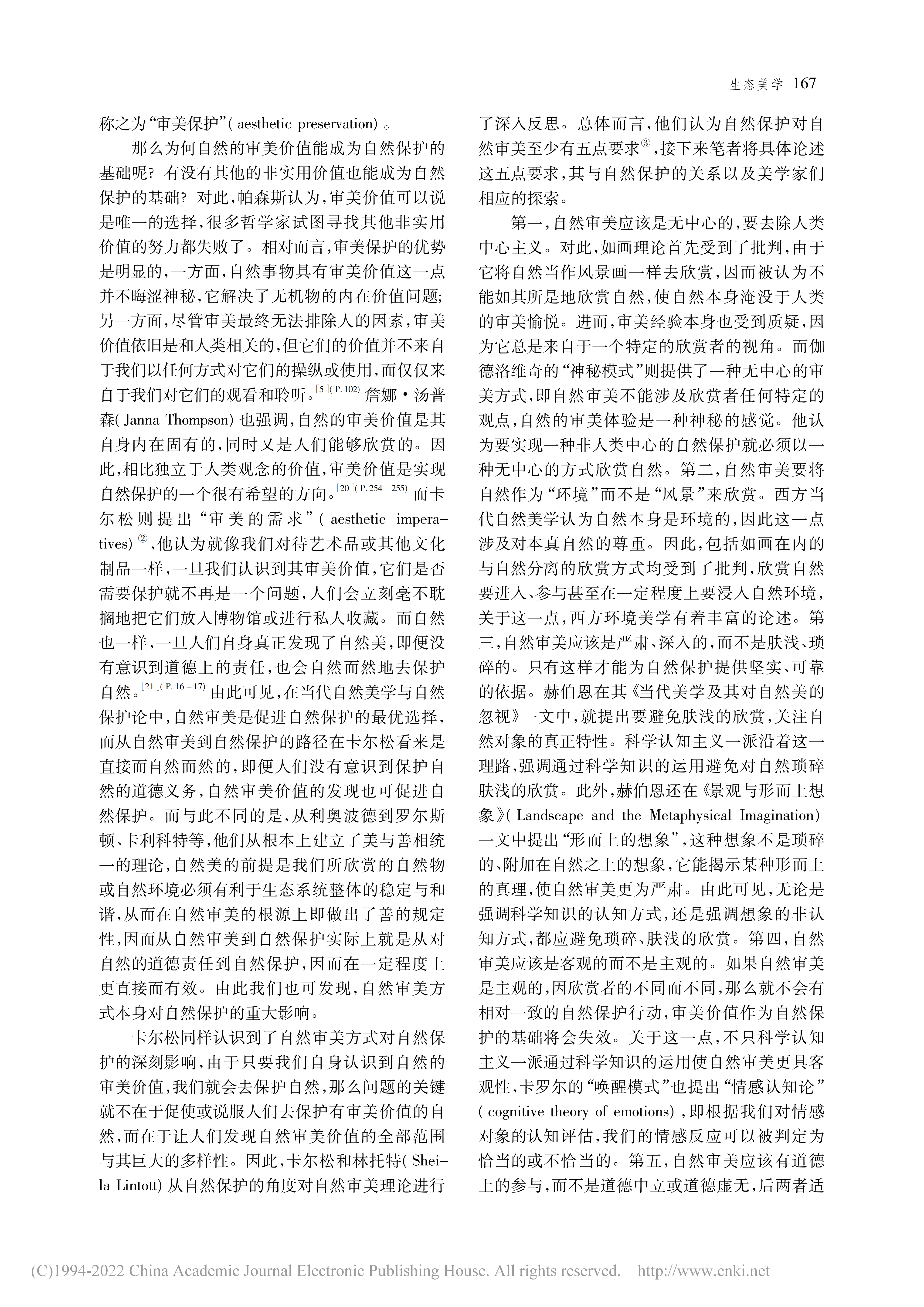 关键词:自然审美;自然美;艺术审美;生态审美;自然保护