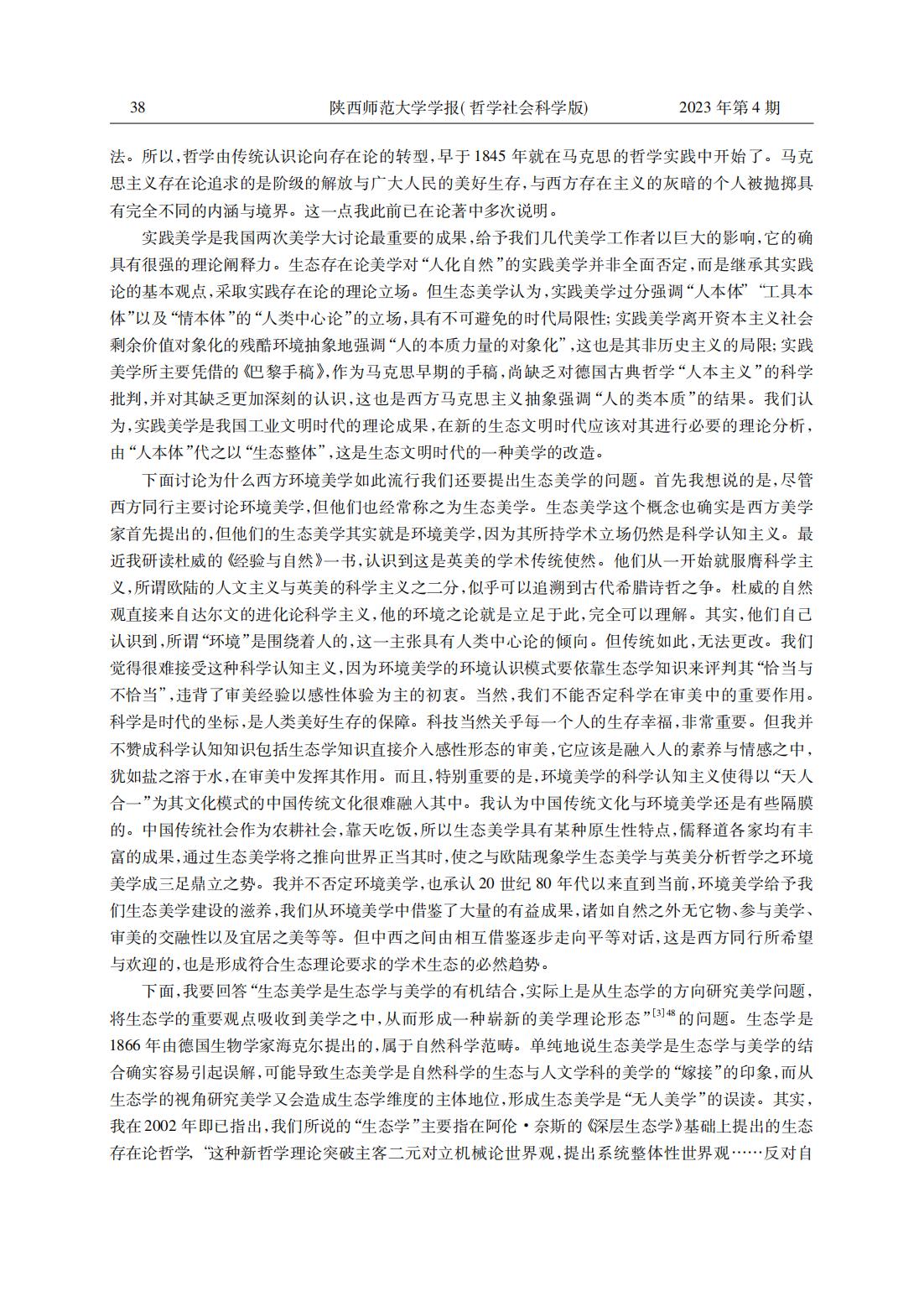 关键词:生态美学;生态文明时代的美学;人与自然关系中的美学;生生美学