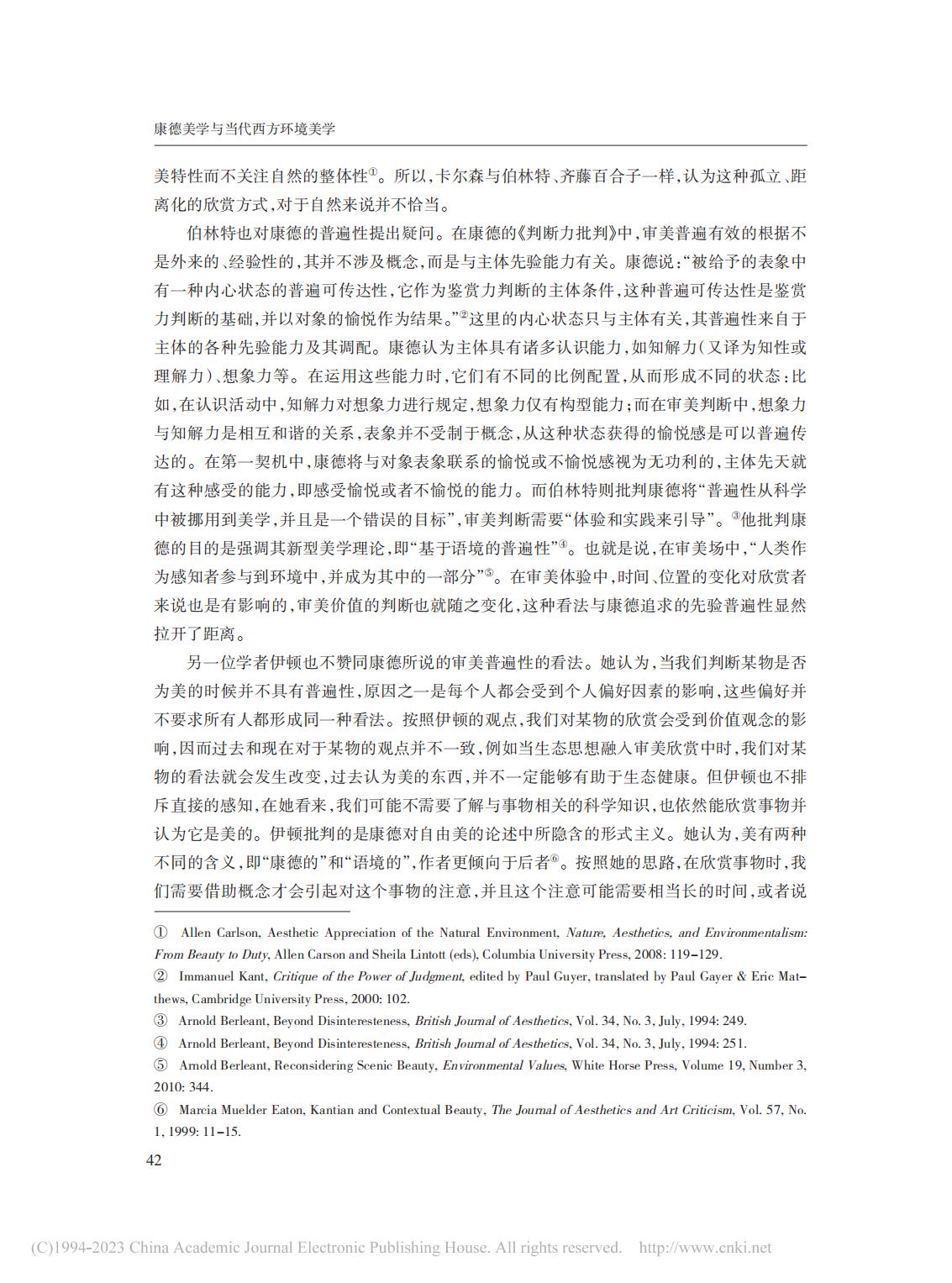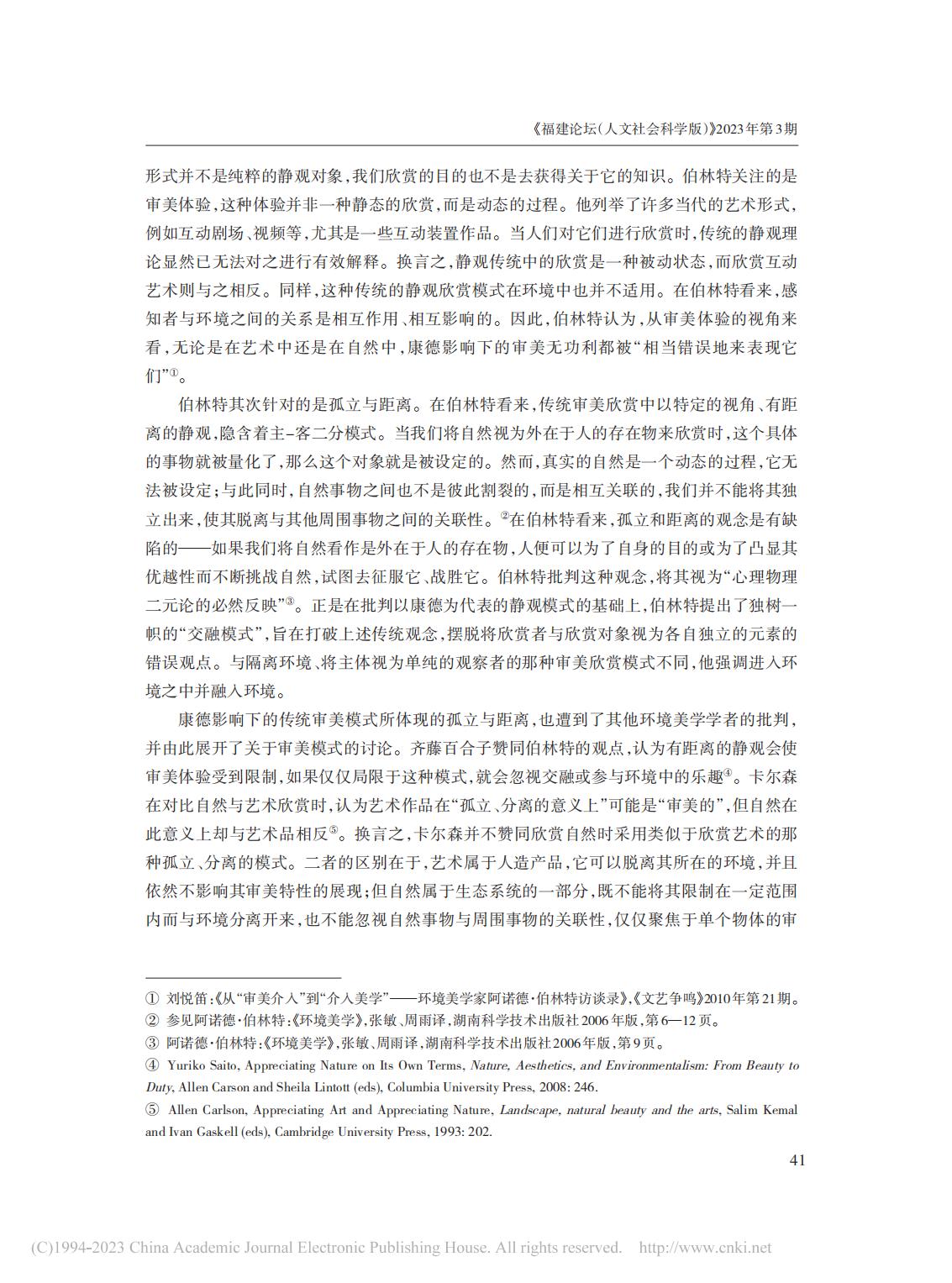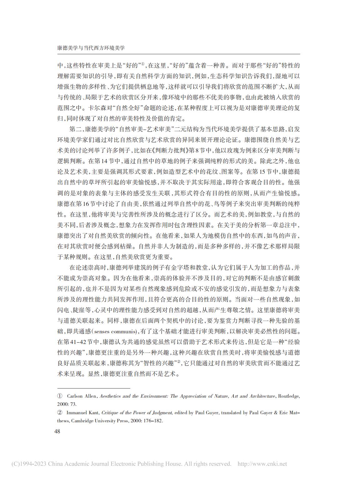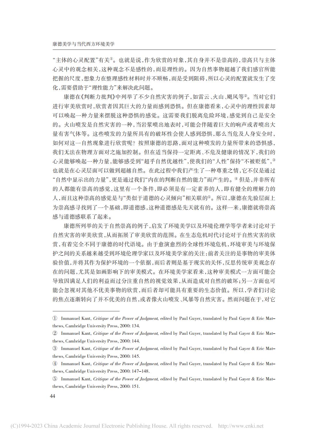 关键词:康德美学;环境美学;自然审美;艺术审美;审美模式;自然灾害欣赏