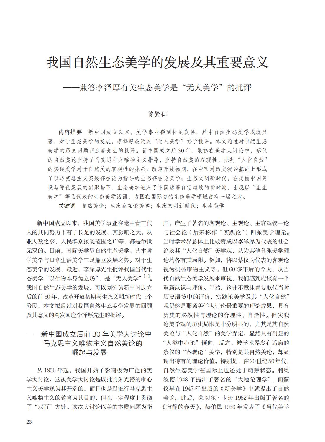 我国自然生态美学的发展及其重要意义——兼答李泽厚有关生态美学是“无人美学”的批评_曾繁仁.pdf