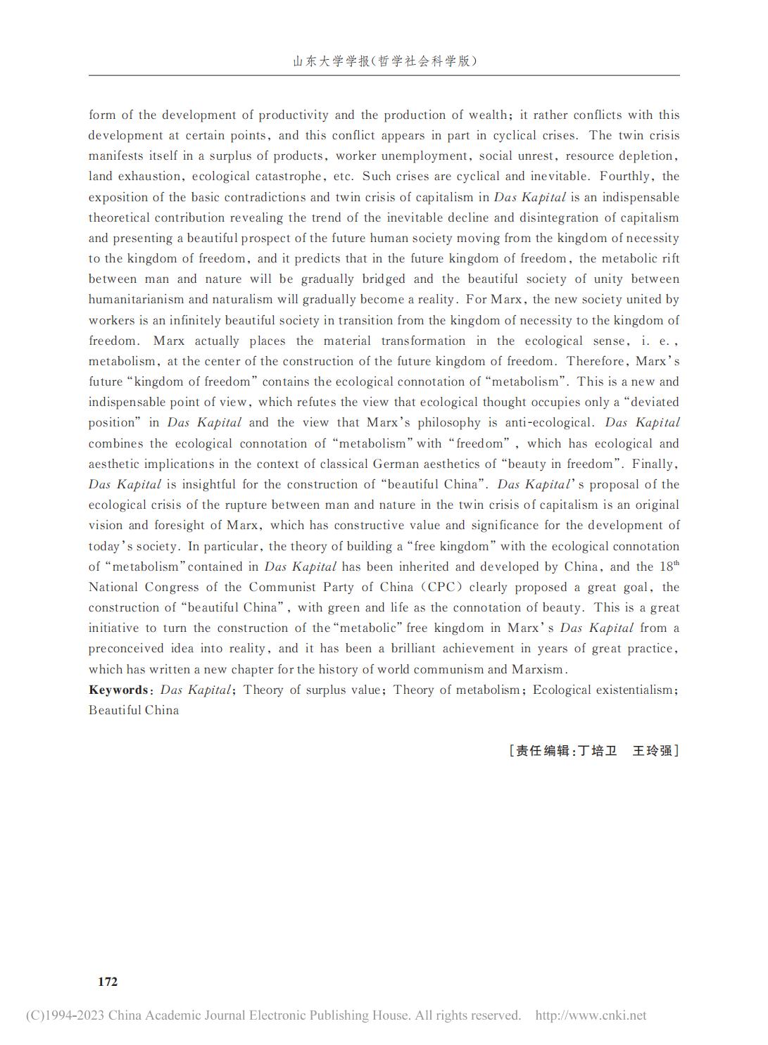 关键词:《资本论》;剩余价值理论;新陈代谢理论;生态存在论;美丽中国