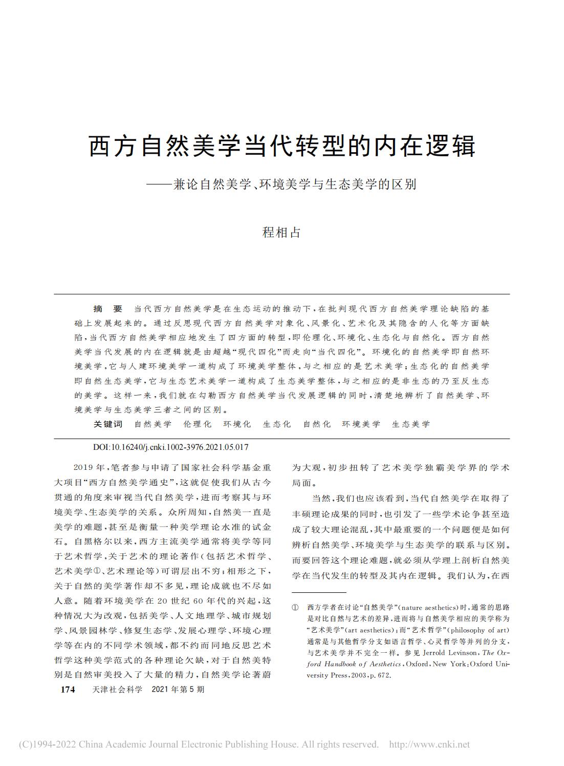 西方自然美学当代转型的内在逻辑——兼论自然美学、环境美学与生态美学的区别_程相占.pdf