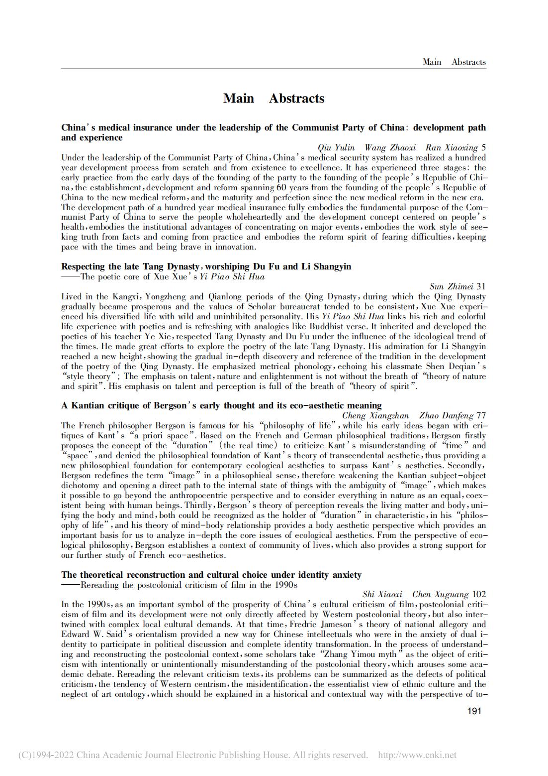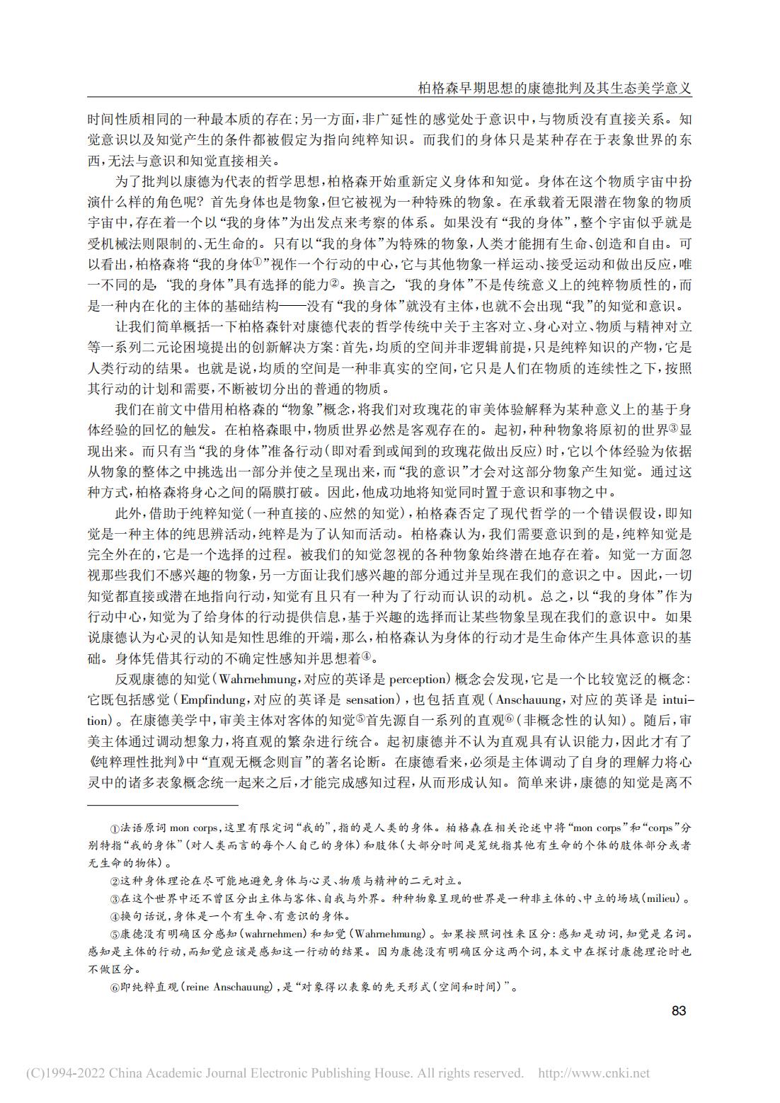 关键词:柏格森早期思想;康德批判;绵延;物象;知觉;生态美学