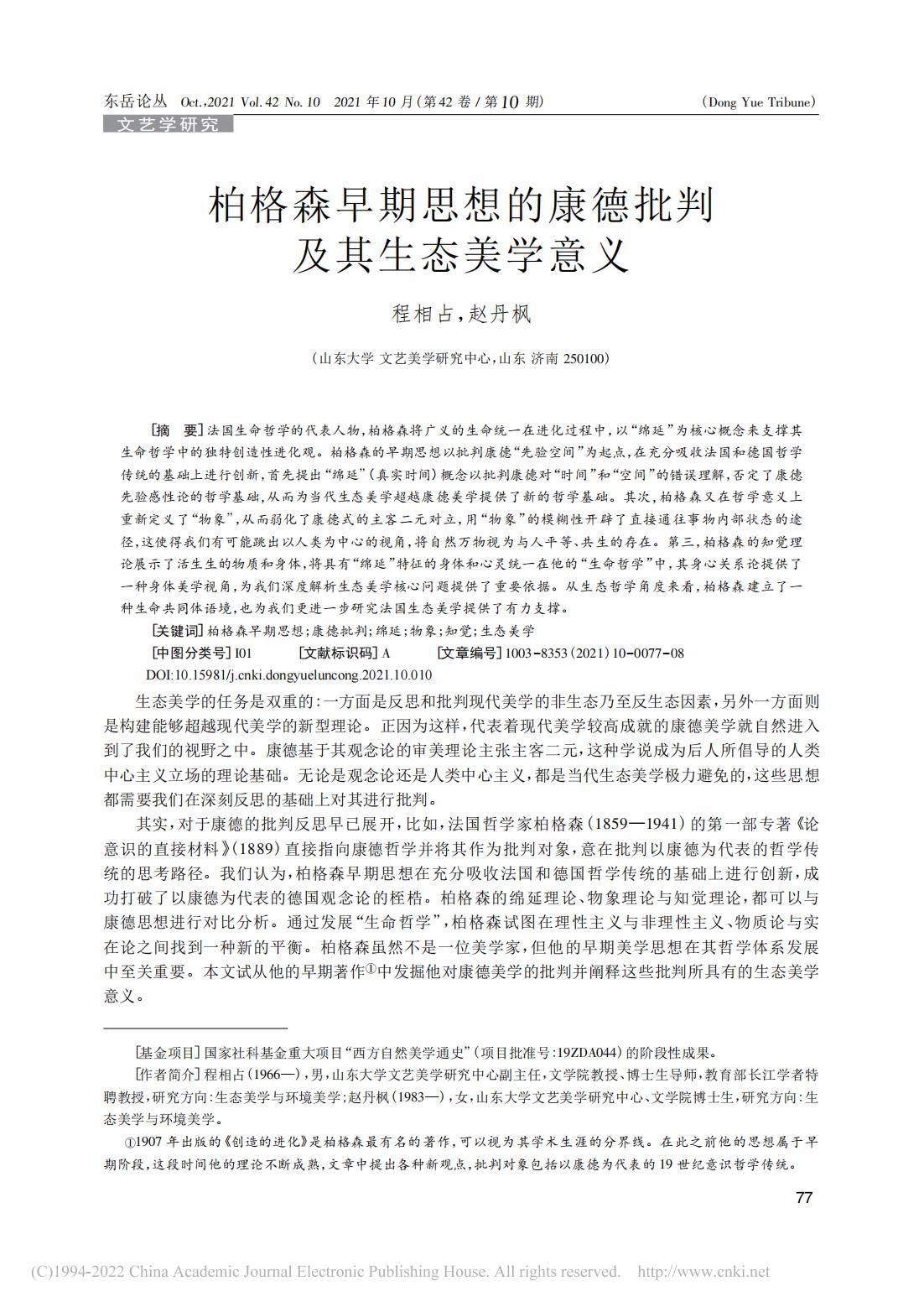柏格森早期思想的康德批判及其生态美学意义_程相占.pdf