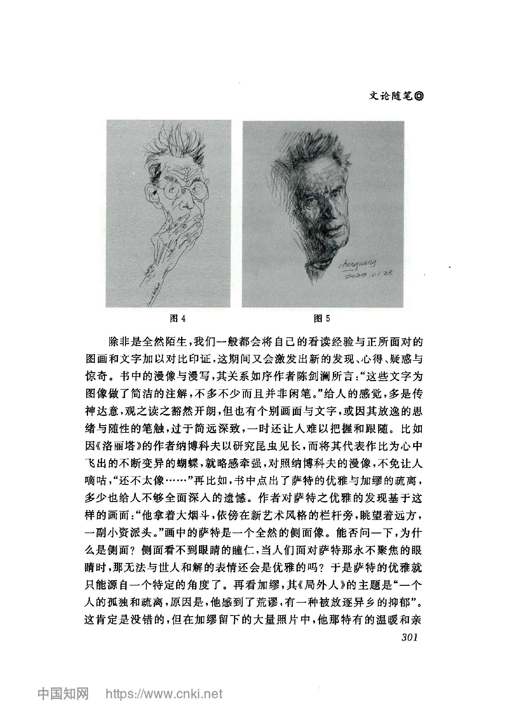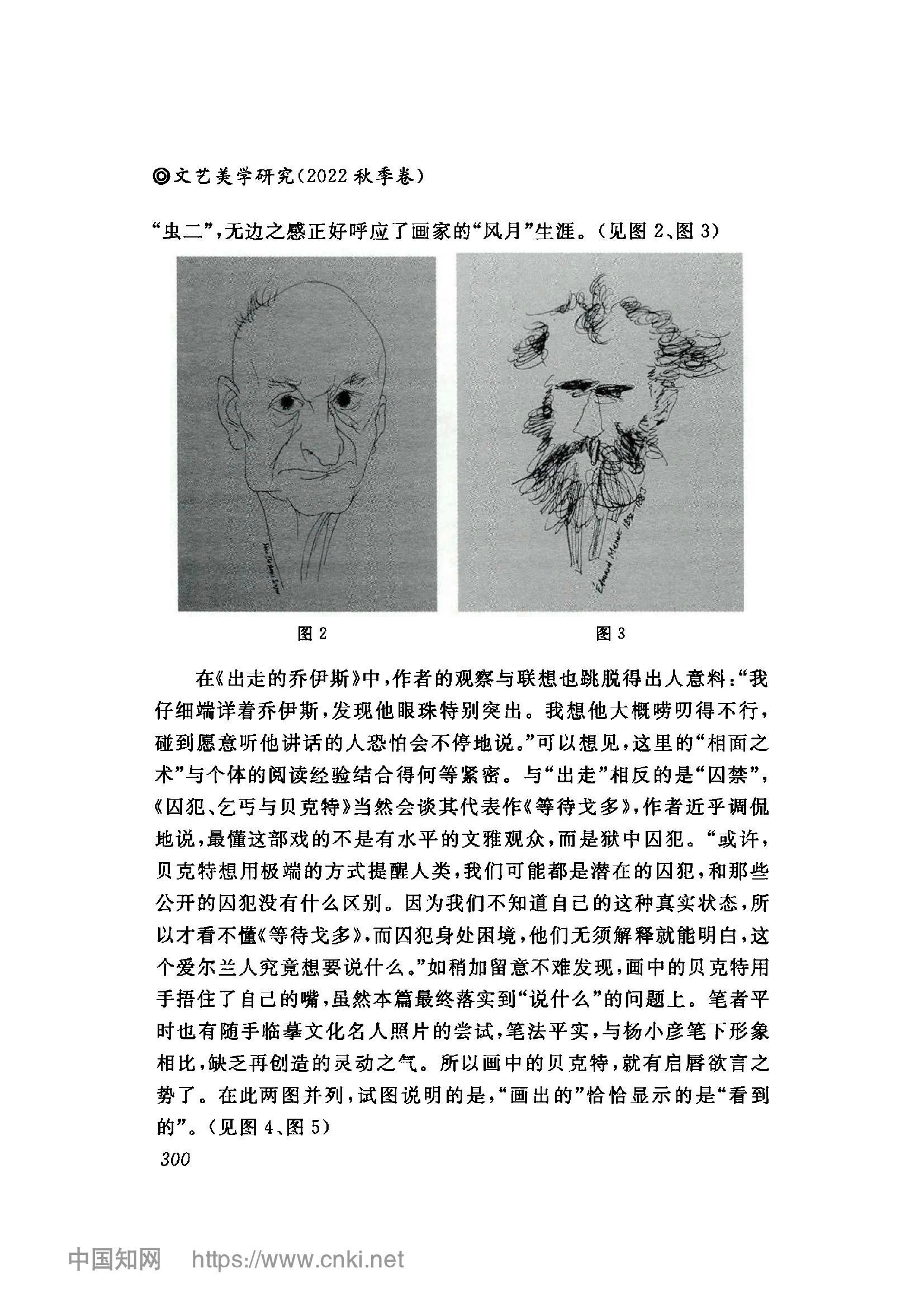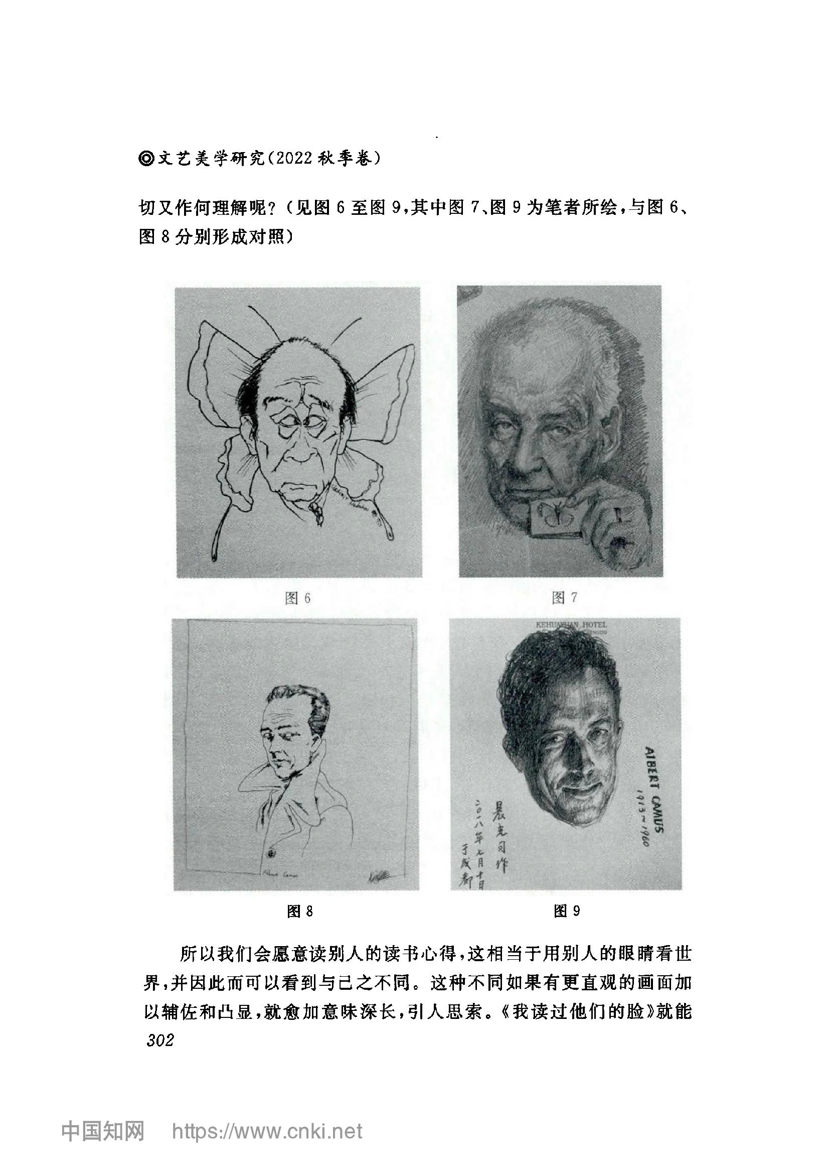 从对象中看到其在表面上不曾有的东西,即为“看出”英语为seeing in”,字面义是看进去。用一句熟语表达就是:“透过现象看本质。”杨小彦从他读过的脸上看出了什么呢?答案在他的文字里面,也在他的画中。作者在这里用了“读脸”而非“看脸”,强调了对于面孔的认知和理解活动。德国学者汉斯·贝尔廷曾有言道:“世上最值得玩味的表面乃是人的脸。”如果脸是表面,那么读脸,就是要读出脸面背后的东西。