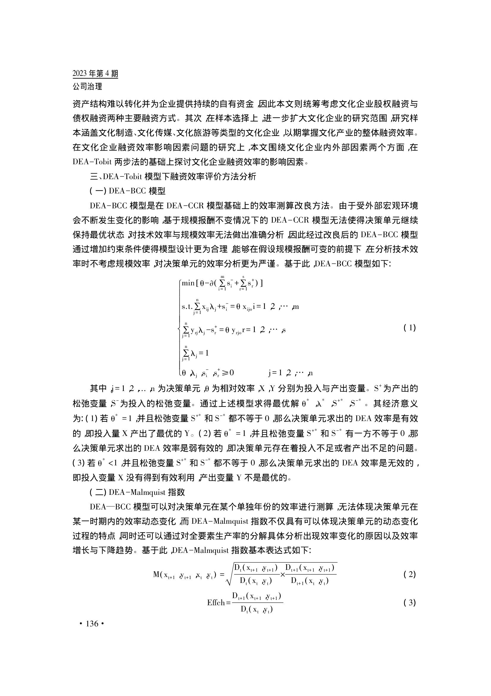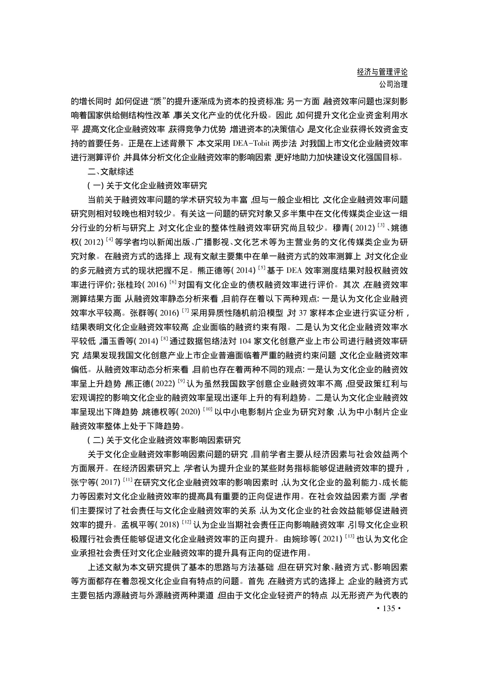 关键词:DEA-Tobit模型;文化企业;融资效率