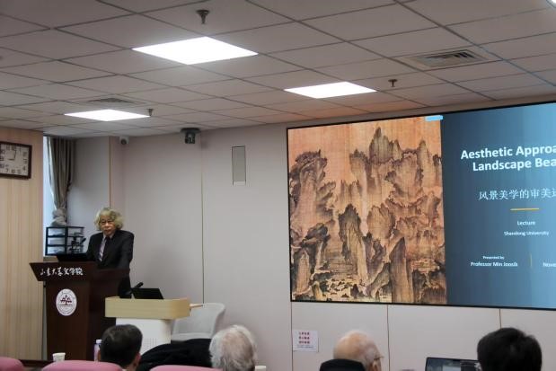 2025年11月19日上午9时,韩国岭南大学美学教授闵周植(Min Joosik)于山东大学中心校区知新楼A座620室为“当代美学前沿:东方与西方”国际学术研习营同学及文学院文艺学专业师生,做题为 “景观美的美学研究” 的国际学术讲座。讲座由山东大学文艺美学研究中心、文学院主办,由文艺美学研究中心副教授陈硕老师主持。出席讲座的老师有:罗德里戈·杜阿特教授、曾繁仁教授、白龙教授、大卫·布鲁贝克教授、阿尔捷姆·拉迪耶夫教授、杨建刚教授等。